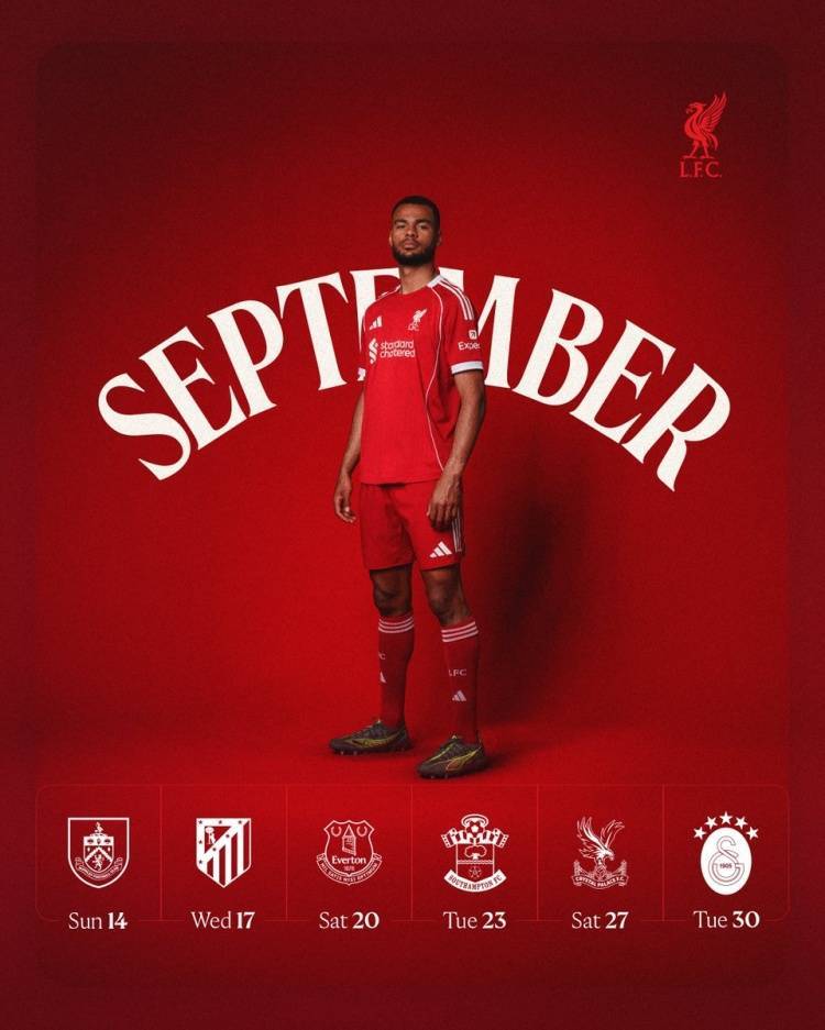 直播吧9月4日讯 利物浦官方社媒晒球队本月赛程,本月球队将有三场联赛,两场欧冠以及一场联赛杯的比赛。